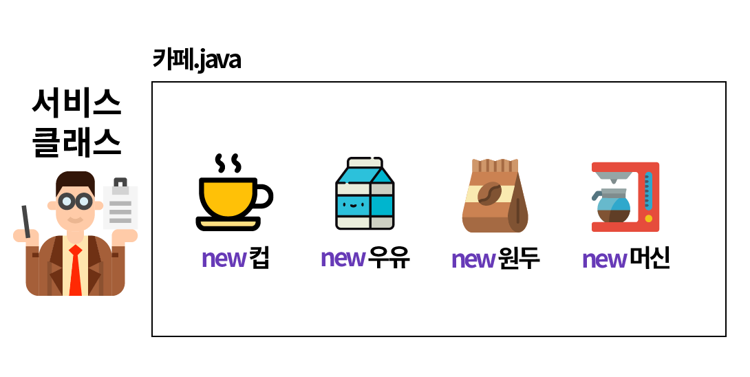 "객체를 생성하고 관리하는 건 내가(스프링 프레임워크) 할 테니까 넌 서비스만 해!"