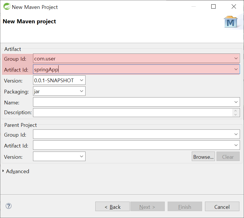 3. GroupId와 ArtifactId를 입력한 후 Next