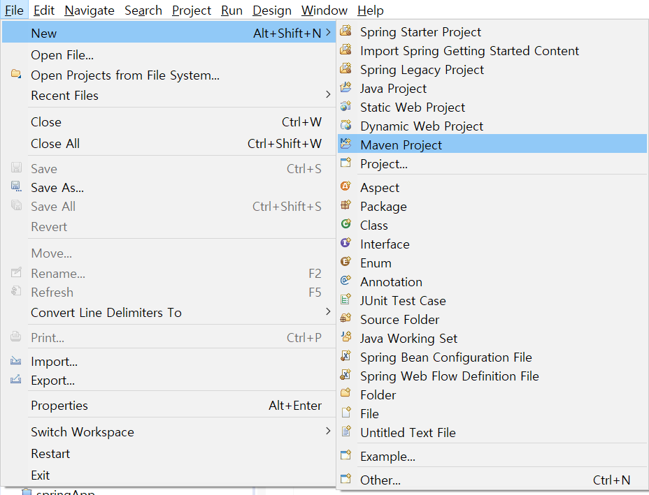 1. File > New > Maven Project 클릭