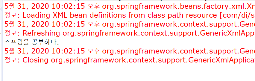 Student student = (Student)context.getBean("student"); //DI컨테이너에서 생성된 학생객체 가져오기