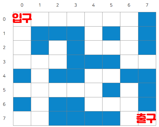 문제에서는 배열의 0은 지나다닐 수 있는 통로고 1은 벽이라고 했다.